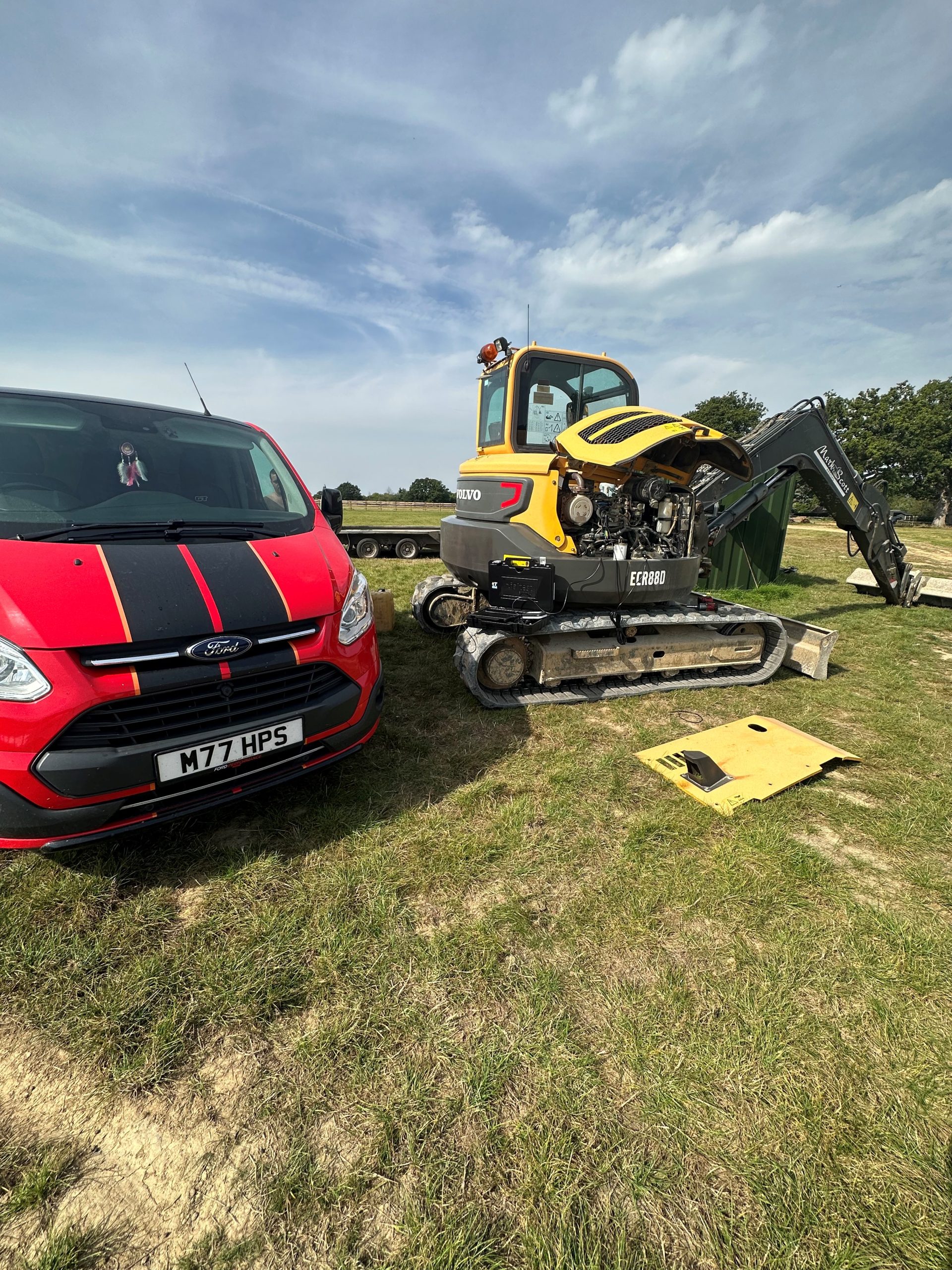 Volvo ECR88D - Using our state of the art diagnostic software we were able read current engine codes P0103 'Air mass flow sensor, short circuit to positive' & Level 3 Inducement excessive accumulation in DPF.